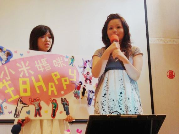 上面那張照片是這次參加的人的大合照囉。中間拿著一個粉紅色汽球的當然就是我們的美麗壽星米老老
