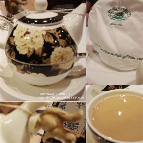 壺裡其實是紅茶,一開始送上來時就是像圖片左上角那張圖片那樣兩層