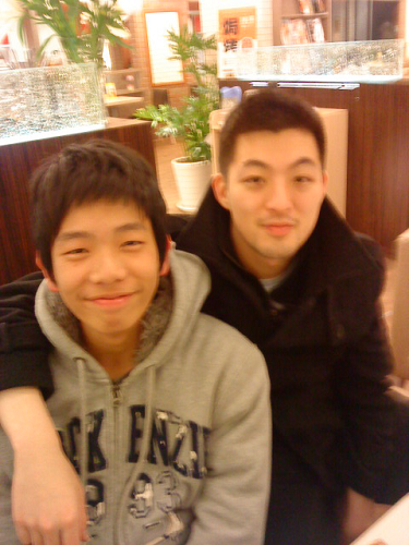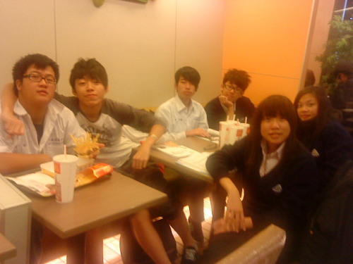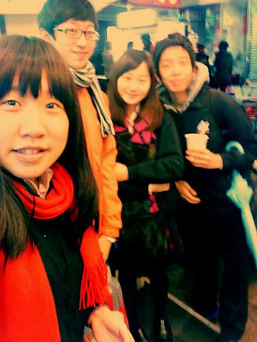 後來晚上離開花博跟蘇奇+阿龎+鎮麟還有碗臻去新光三越吃東西好玩喔:D